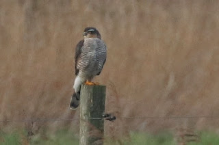 Just 2-3 Sparrowhawks including this distantly perched bird and one Marsh Harrier and later 50+ Great Crested Grebes off Brownwich.